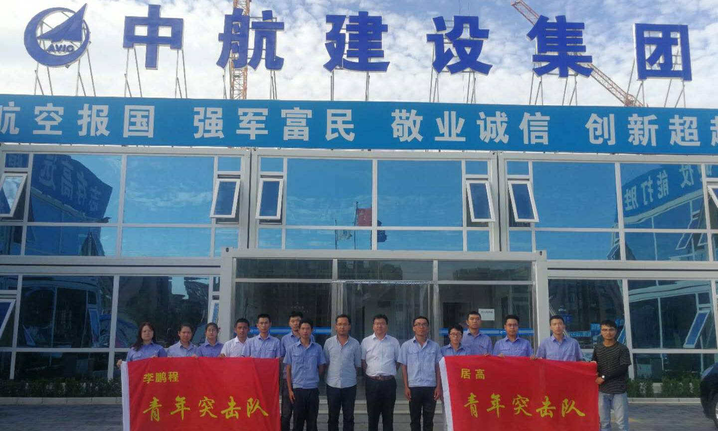 授旗后,所有突击队员在项目办公楼前合影留念,标志着大兴保障房项目青年突击队的正式成立,吹响了项目部青年职工奋勇向前、争当先锋的号角。