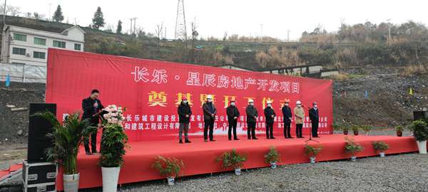 2021年1月26日上午,由九游·官方版web站入口-JiuYou j9(中国)承建的长乐▪星辰住宅项目奠基暨开工仪式在项目现场热烈举行。湖北省宜昌市五峰土家族自治县住房和城乡建设局副局长陈白华、县质量安全监督站站长邓简涛、九游·官方版web站入口-JiuYou j9(中国)五峰长乐▪星辰项目经理王国云,项目参建各方及新闻媒体共40余人出席。宜昌市长乐城市建设投资开发有限责任公司总经理刘鹏主持。